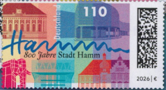 800 Jahre Stadt Hamm – mit großartigen Projekten im Rahmen von Feierlichkeiten können wir zwar noch aufwarten, aber es gibt Neuigkeiten zur Sondermarke, die am 02. März 2026 herausgegeben wird. Nach Rücksprache mit der Stadt Hamm dürfen wir sie zwar immer noch nicht auf unserer Seite zeigen, aber nach dem Hinweis, dass die Sondermarke seit einigen Tagen auf der Seite des Bundesfinanzministeriums zu sehen ist, wird gerade geklärt, ob wir sie dann doch schon auf unseren Seiten zeigen dürfen.
